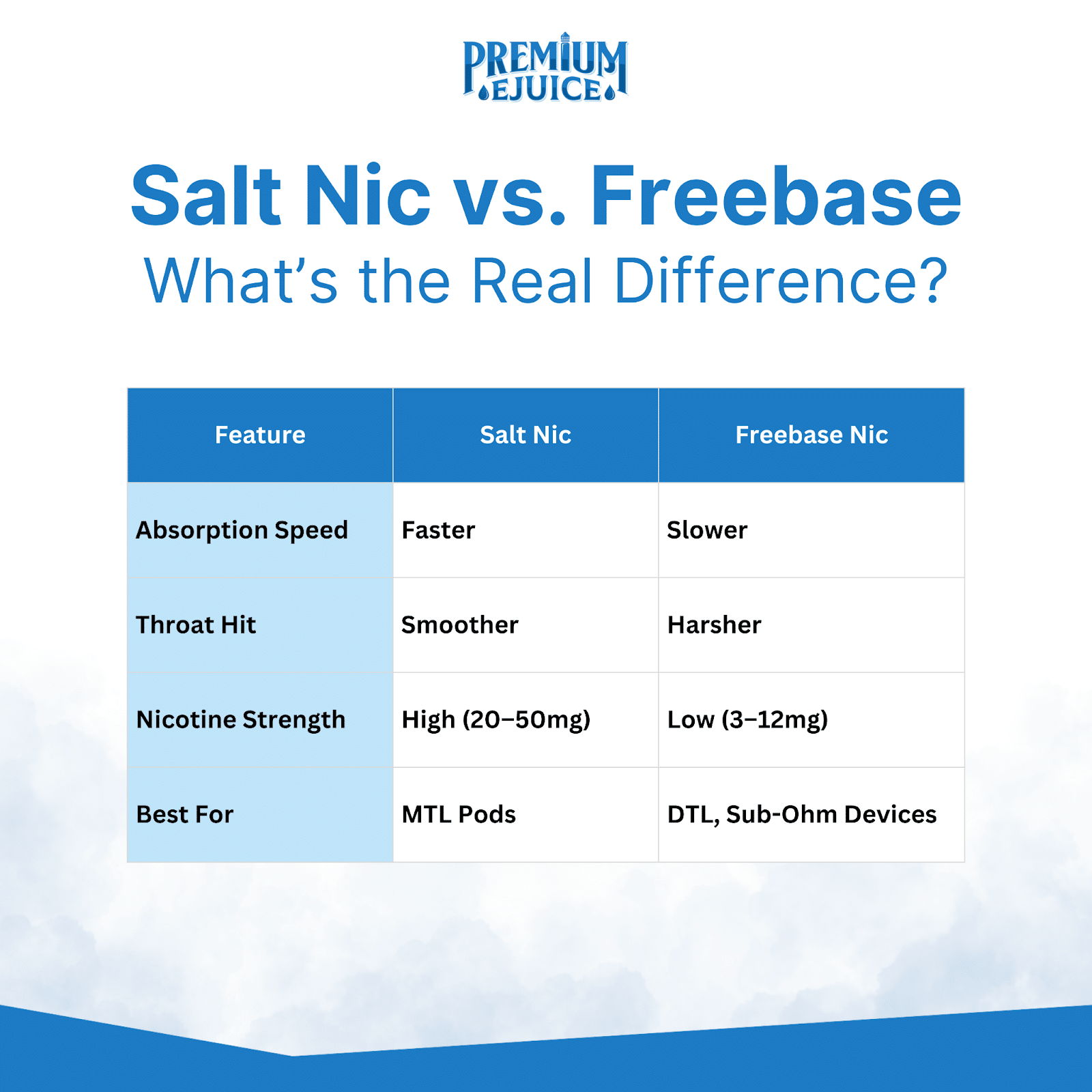 - Salt Nicotine: Smooth on the throat and best suited for pod systems or low-wattage devices. It delivers nicotine quickly, mimicking the satisfaction of a cigarette without the burn.