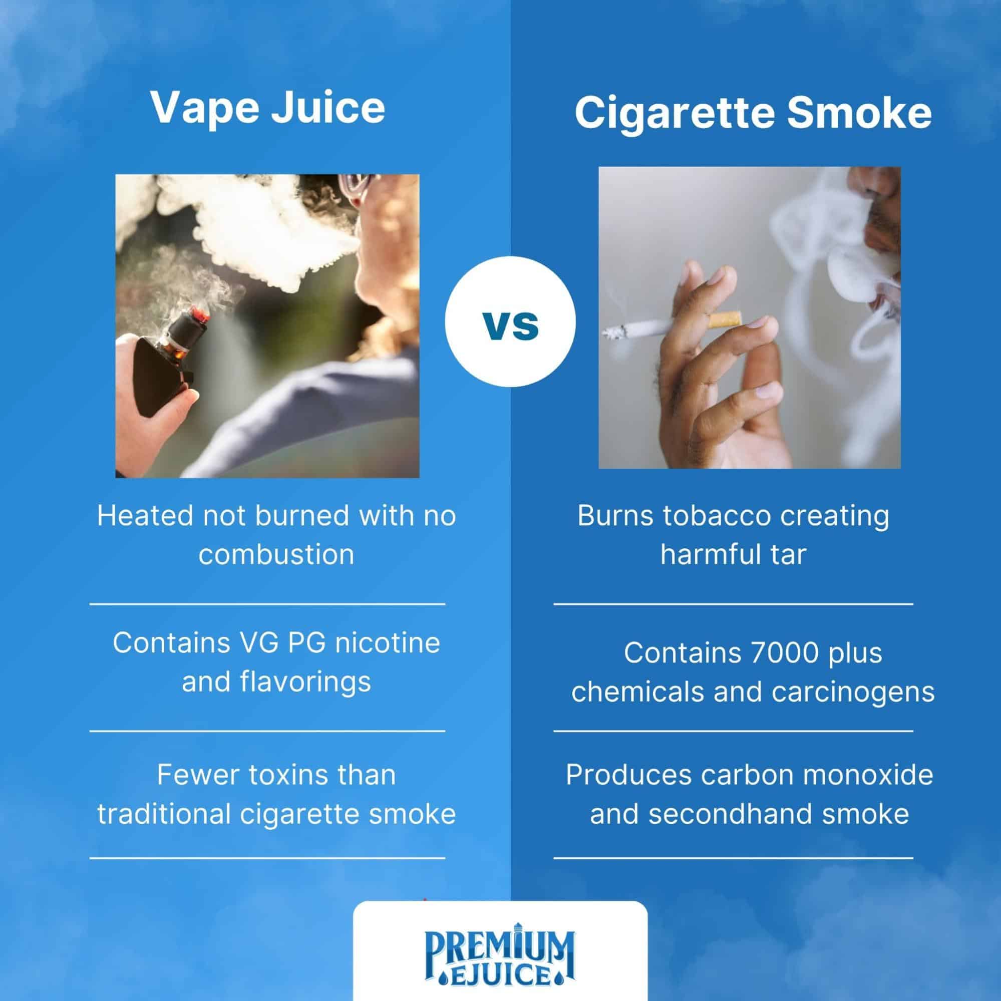 - Vaping skips the combustion and the 7,000+ chemicals in cigarette smoke.